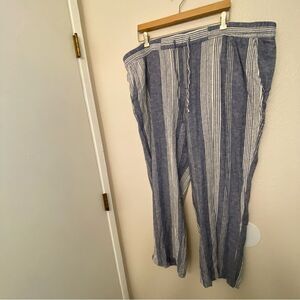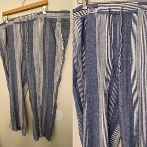 OLD NAVY Women’s Linen Blend blue Striped Wide Leg Boho pull on pants XXL