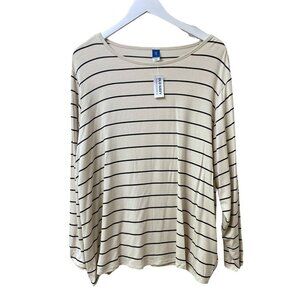 OLD NAVY Long Sleeve Tee Size XXL Womens Nautical Stripe Top Beige Black