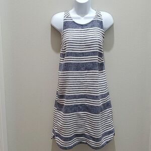 OLD NAVY MIDI SUMMER DRESS, Sz S, Blue/White, Striped, Linen/Rayon, Lightly worn, like new