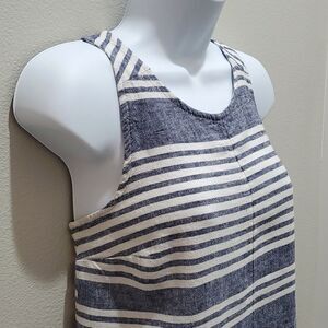 OLD NAVY MIDI SUMMER DRESS, Sz S, Blue/White, Striped, Sleeveless, Linen/Rayon