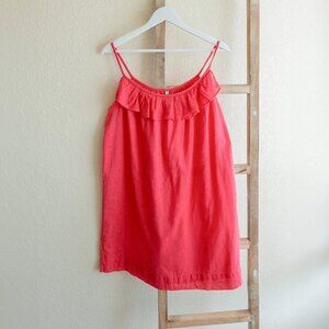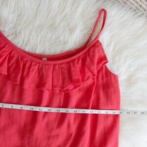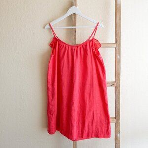 OLD NAVY MINI DRESS SZ M CORAL LINEN COTTON BLEND SLEEVELESS RUFFLE NECK