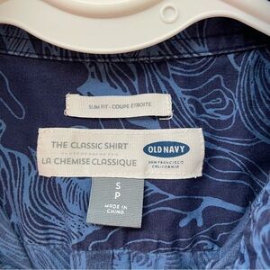 OLD NAVY Men's Blue Wave Pattern 100% Cotton Short Sleeve Button Up