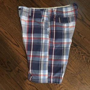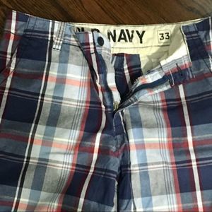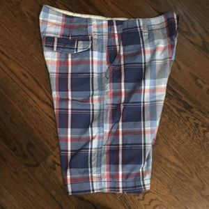 OLD NAVY Mens Flat Front Plaid Longer Length Shorts Sz 33