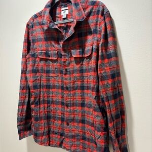 OLD NAVY • Men’s Regular Fit Red/Grey/Navy Flannel Plaid Button Down Shirt Sz L