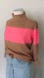 Stay cozy and stylish with this brown and pink women's sweater. Perfect for any casual outing.