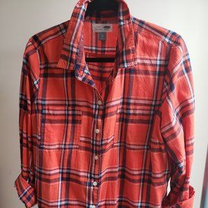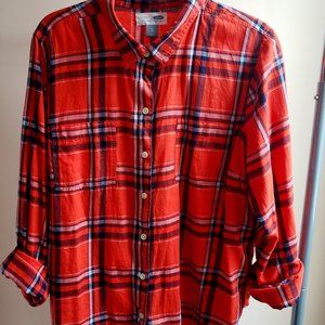 ►STYLE: long sleeve, red multi color plaid button up, light weight.