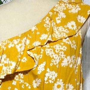 OLD NAVY ONE SHOULDER YELLOW FLORAL SUMMER/SPRING DRESS XL NEW