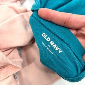 Both items have small flaws (please see photos 3-6 for reference). Both items are from Old Navy, and size 5T. Great for loungewear or for play. Cotton / polyester blend. Please see photographs for measurements and details.