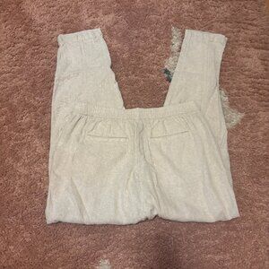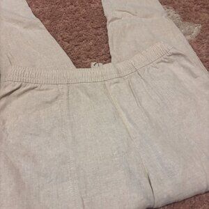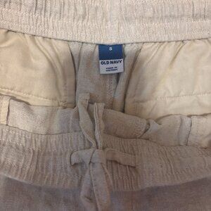 OLD NAVY Pants Sz S Linen Blend Sand Ivory Pull On Straight Pocket Drawstring