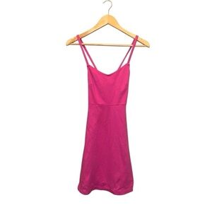 OLD NAVY Pink Fit & Flare Strap Dress Knit Cami Smock Back Criss-Cross Womens XS