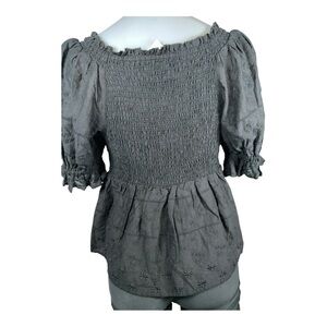 OLD NAVY Puff-Sleeve Smocked Embroidered Babydoll Blouse Elegant Women's SZ M