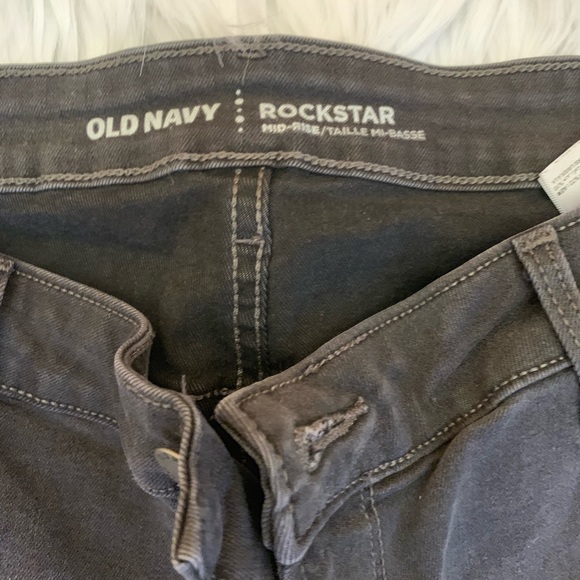 Mid-Rise rockstar Distressed Skinny Jeans for women -gray denim wash -button-closure and zip fly