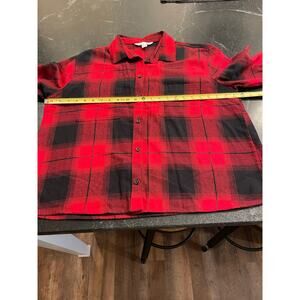 Red and Black Plaid Old Navy Boyfriend Shirt. this has been worn once. has a boxier fit more like a Shacket in my opinion. Has side slits at hips. Great layering piece or can be worn on its own. In excellent shape. Perfect for the holidays. is lightweight. great for Christmas or Valentines Day