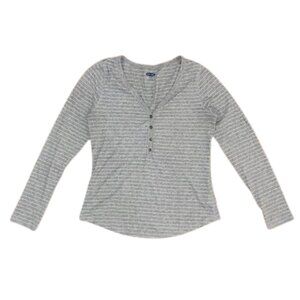 OLD NAVY Rib Knit HENLEY TEE Gray Striped Long Sleeve Top Ribbed Slim Fit