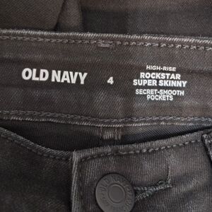 OLD NAVY Rockstar High Rise Super Skinny Sz 4 Women's Black Distressed Ripped Stretch Jeans. 26" waist at rise, 10" rise, 28" inseam. Compare to $50 new!
