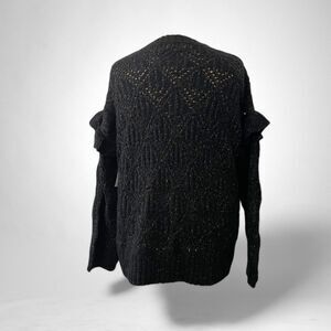 Old Navy Pointelle-knit ruffle sleeve sweater that is New With Tags! Beautiful black with silver threads throughout. Perfect to wear casually or dress up for a party. Perfect for holiday wear!
