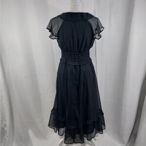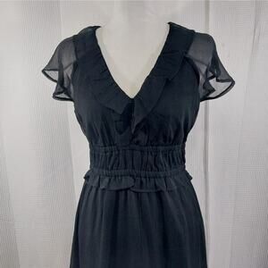 OLD NAVY! SHEER BLACK SCRUNCHY TEXTURED CHIFFON RUFFLED HEM/NECK DRESS! SZ M