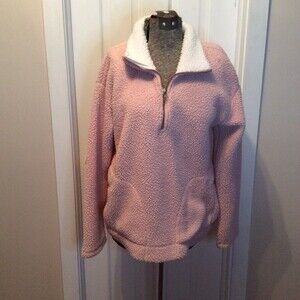 OLD NAVY SIZE MEDIUMl PINK SHERPA 1/2 ZIP PULLOVER JACKET FLEECE