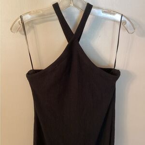OLD NAVY SIZE XL BLACK RIB KNIT HALTER MIDI DRESS WITH SIDE SLITS