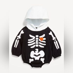 OLD NAVY SKELETON HALLOWEEN Unisex Hooded Graphic One-Piece Romper for Baby