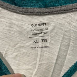 OLD NAVY SOFT-WASHED Ultra Raglan T-Shirt Men's XL Teal Off White Short Sleeve