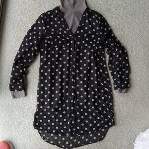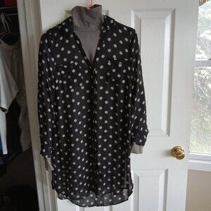 OLD NAVY Sheer Navy Polka Dotted Long Shirttail Shirt