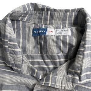 OLD NAVY Shirt Button Up Men XXL Grey White Striped Regular Cotton (304)