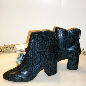 OLD NAVY Sz 10 NWOT Rear Zip Blue/Black Snakeskin Pattern Booties 3" Heel