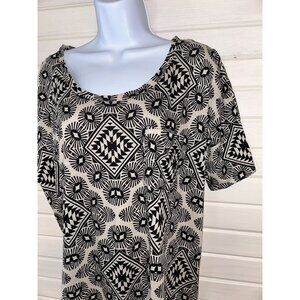 OLD NAVY Sz LARGE Boyfriend Fit Tee Top Khaki Black Tribal Aztec Print EUC