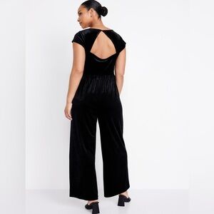 Step out in style with this elegant black velvet jumpsuit. Perfect for any occasion, it offers a flattering fit and luxurious feel.