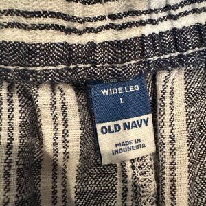 OLD NAVY WOMENS BLUE STRIPE WIDE LEG LINEN PANTS LARGE NEW