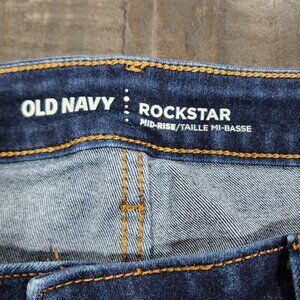 Old Navy women's Rockstar mid-rise skinny jeans. They are size 12 short. Inseam is 25.5 inches and waist is 30.5 inches. 72% cotton, 17% polyester, 9% rayon and 2% spandex. They are in excellent condition.