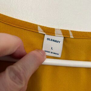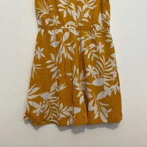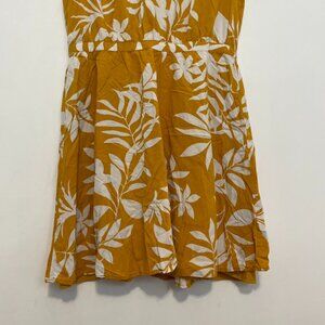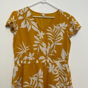 OLD NAVY Waist Defined V-Neck Dress Mustard Yellow White Floral Cap Sleeve Knee