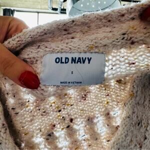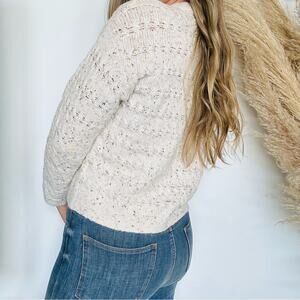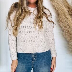 OLD NAVY White Multi Marled Chunky Knit Crew Neck Woven Crop Pullover Sweater S