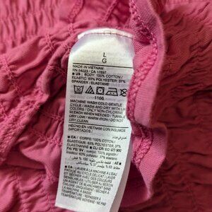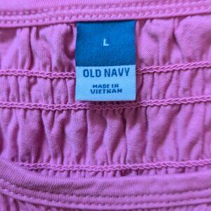 OLD NAVY Women Sz L Shirt Pink Smocked Puffed Flutter Short Sleeves Cotton