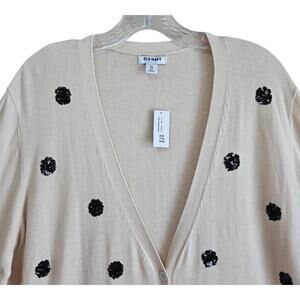 OLD NAVY Women XXL Cardigan Sweater Cream Black Sequin Dots Cotton Blend 48" NEW