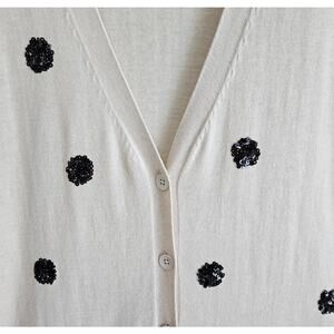 OLD NAVY Women's Plus Size XXL Cardigan Sweater - Button Up, Cream with Black Sequined Polka Dots, Long Sleeve, Lightweight, 53% Cotton, 40% Nylon, 7% Viscose