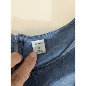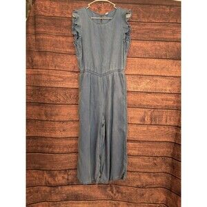OLD NAVY Womens Crop Blue Chambray Flutter Sleeves Jumper Jumpsuit Romper Sz M