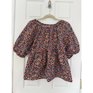OLD NAVY Women’s FLORAL PUFF SLEEVE CROPPED Baby Doll Peplum BLOUSE Large