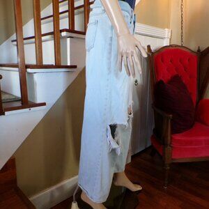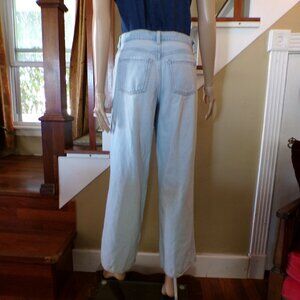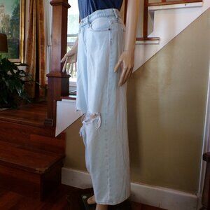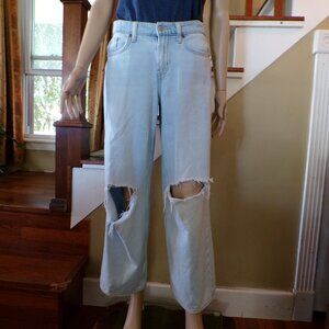 OLD NAVY Women's Faded Distressed Blue Jeans w/KNEE HOLES Mid Rise Baggy Wide Leg Size 0
