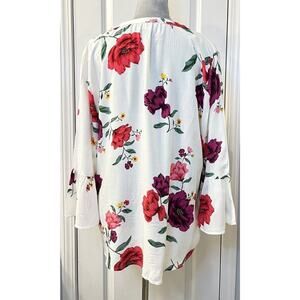OLD NAVY Women’s Floral Tie Neck Bell Sleeve Blouse Top Flowy L Boho Lightweight