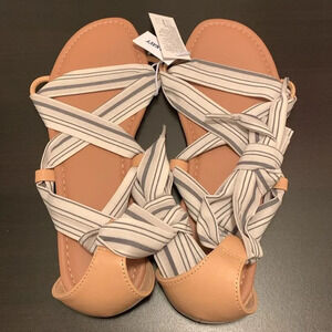 OLD NAVY Wrap Tie Scarf Sandal in Neutral Stripe New with Tags