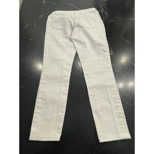 in good pre-owned condition. no holes or tears however there are 2 faint small spots on R leg around the knee (see photo with ink pen for reference/scale).