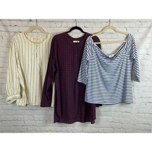OLD NAVY set of 3 cream red blue check striped top tunic shirt long sleeve XXL