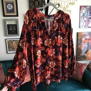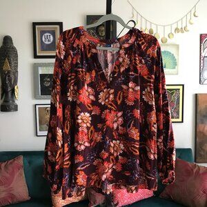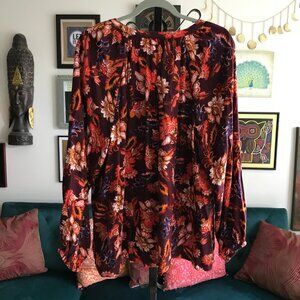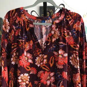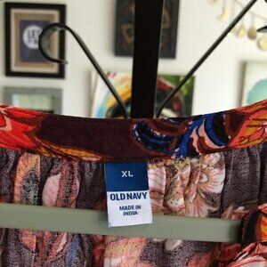 OLD NAVY size XL Autumn Toned Floral Burgundy Long Sleeve Peasant Top
