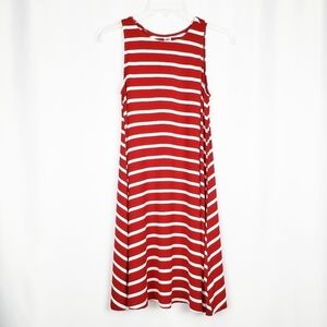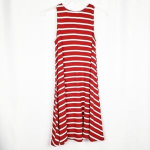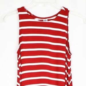 Old Navy sleeveless dress, higher neckline. Very stretchy and flowy. Red and white stripe. Perfect for summer!
