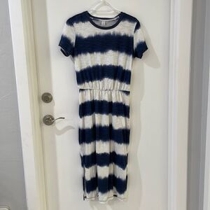OLD NAVY tie dye stripe blue white maxi dress empire waist small
