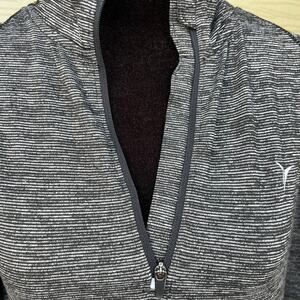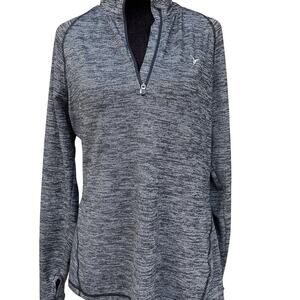 Old Navy active, GO DRY, size L women’s. Black gray heather color. Quarter zip, long sleeve, rounded hem & thumb holes. Made of polyester and spandex, stretchy.