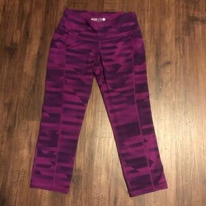 Old Navy Active fitted, cropped yoga/athletic pants. Great pre-owner condition! Has hidden pocket in the back. Measures: 12.5” across the waist, 20” inseam. Materials: 85% polyester, 15% spandex. Colors: hot pink, purple.