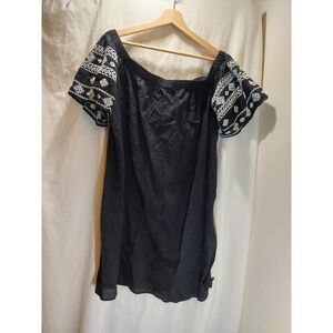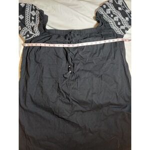 Old Navy Black Tunic Style Blouse Embroidered Cap Sleeve, Size XL. Loose fit top from Old Navy. Tie Front. Excellent preowned condition, no visible rips or stains. Machine washable, 100% cotton. Size XL, measures 22 inches from pit to pit and 33 inches from shoulder to hem. All items clean and ready to wear. Items ordered before 12 noon Central time ship that day, M-F, except holidays. Smoke and pet-free environment.